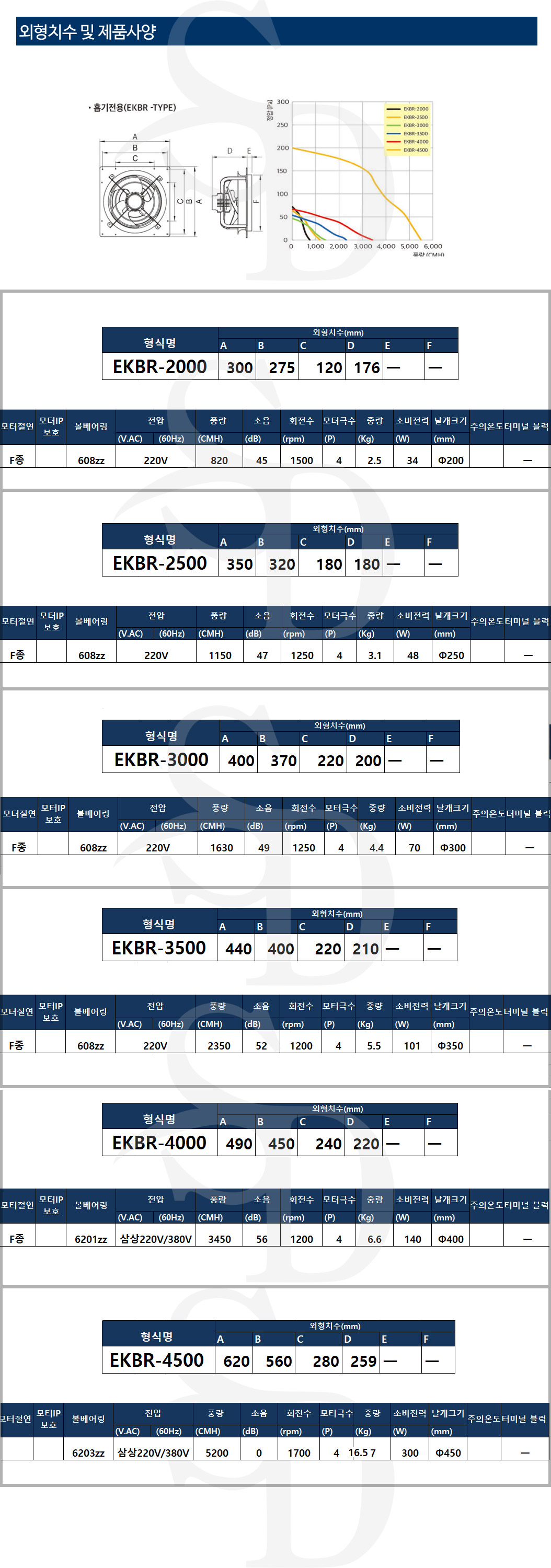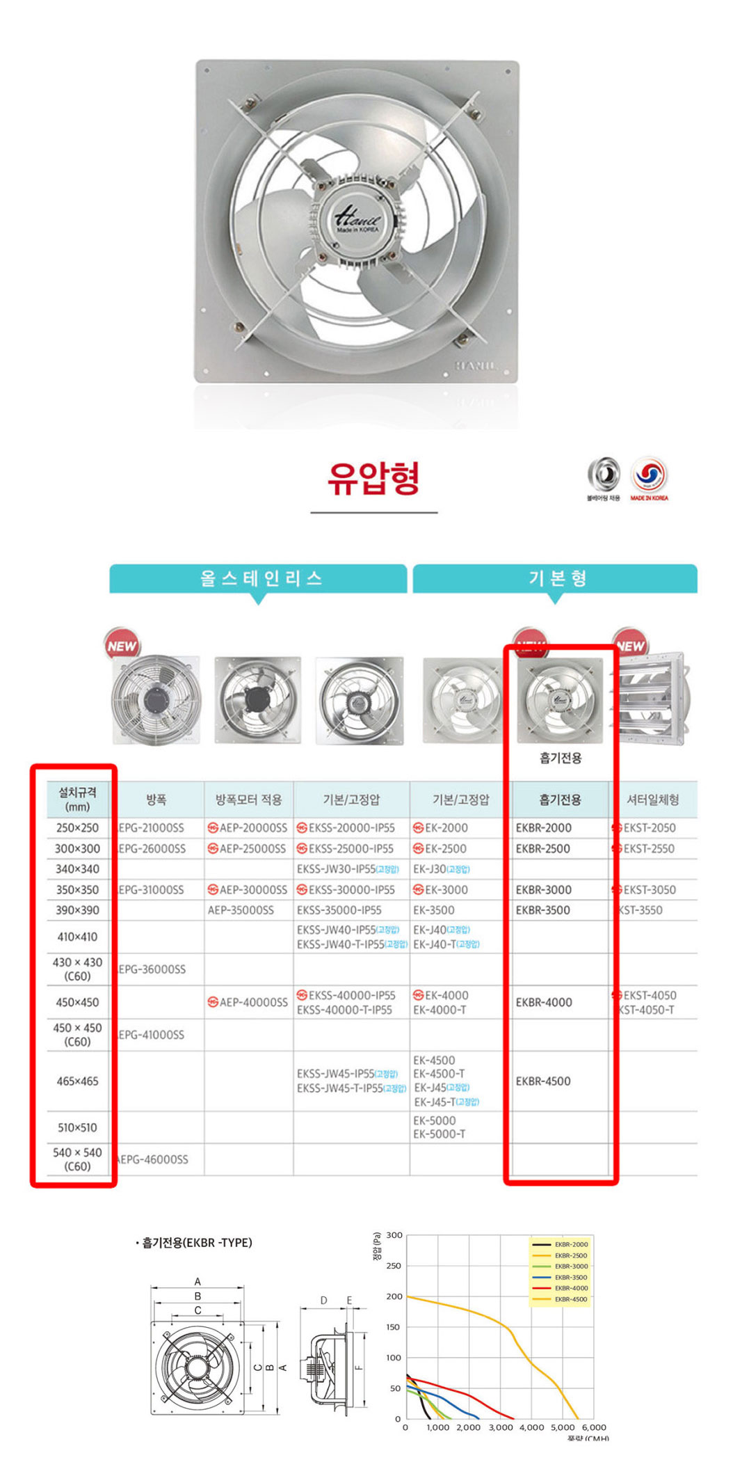 한일전기 [EKBR-2000/2500/3000/ 3500/4000/4500] 저소음 환풍기