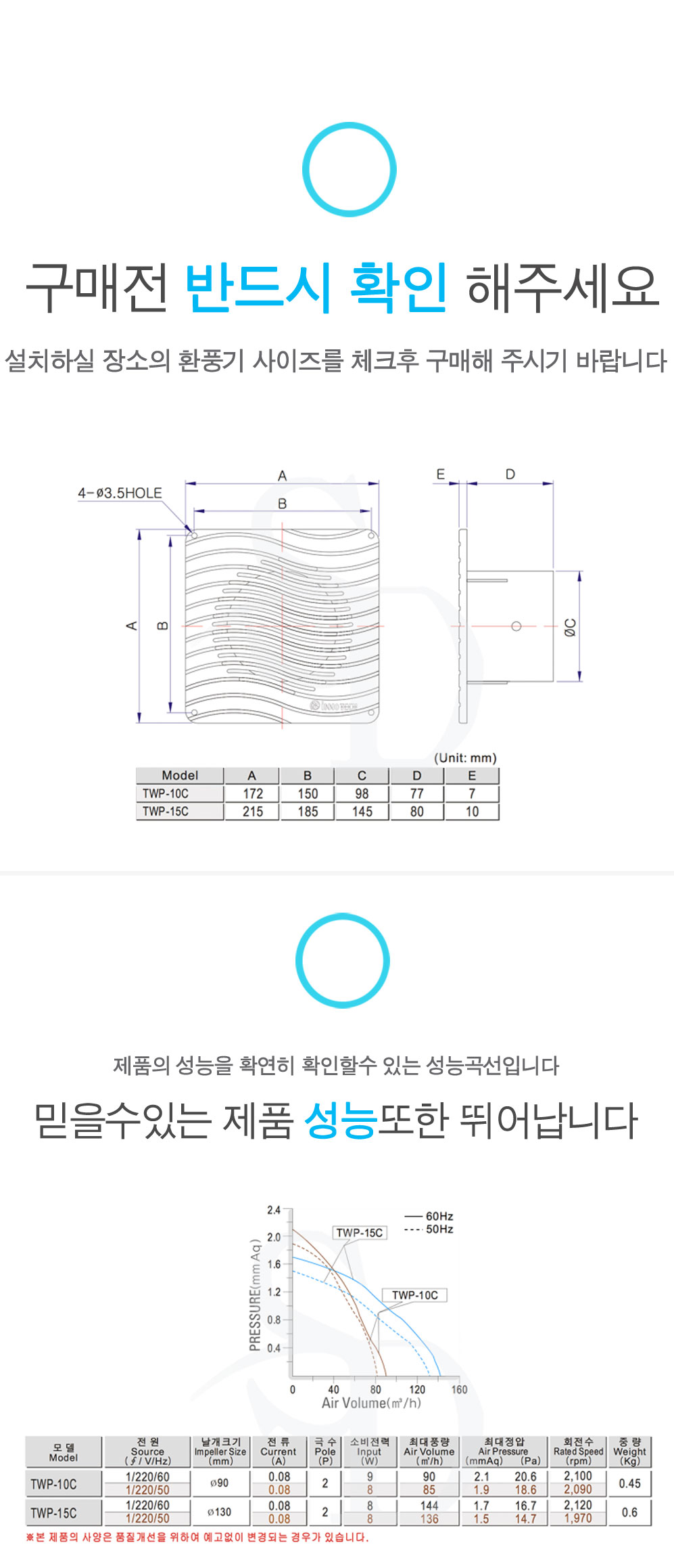 이노텍 [욕실환풍기] TWP-10C/ TWP-15C/ 100파이/ 150파이