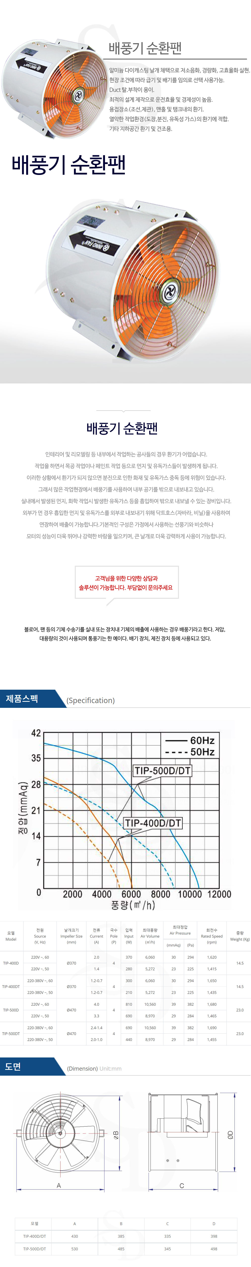 이노텍 배풍기 순환팬 TIP-400D,TIP-400DT,TIP-500D,TIP-500DT