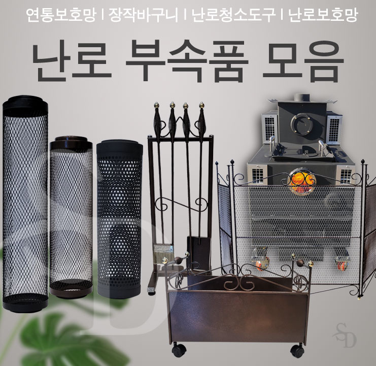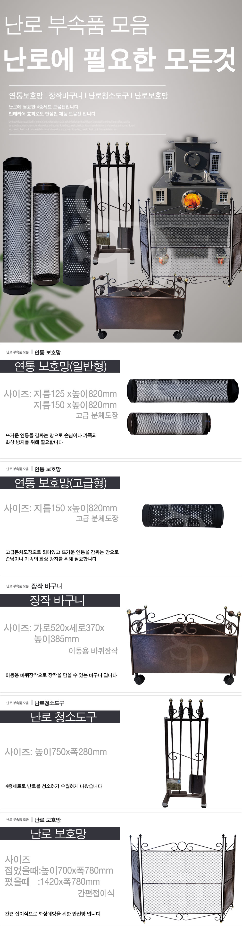 난로 부속품 모음[연통보호망/장작바구니/난로청소도구/난로보호망]