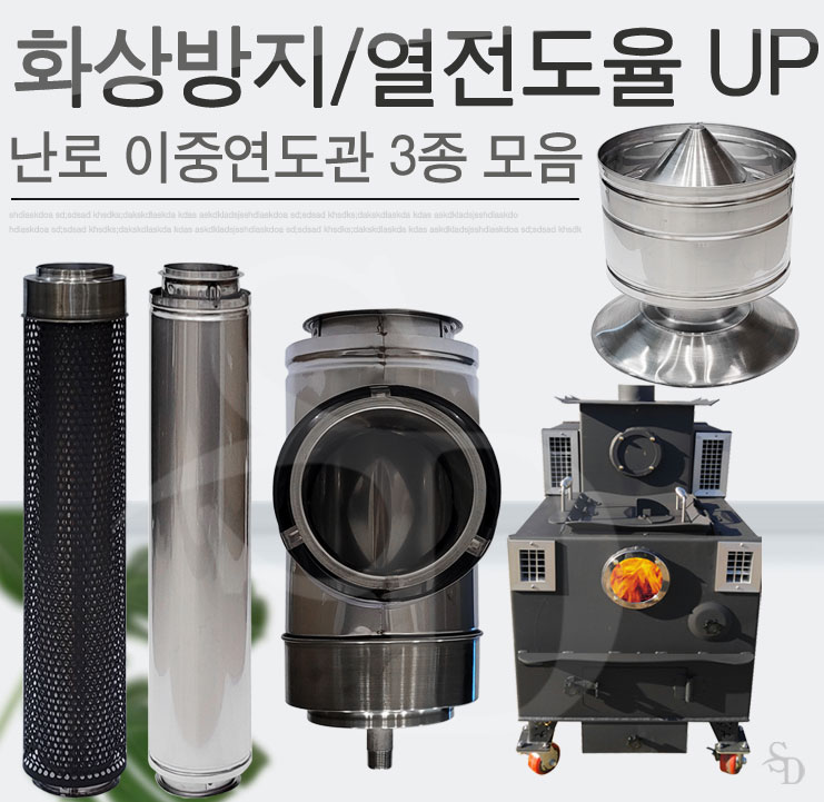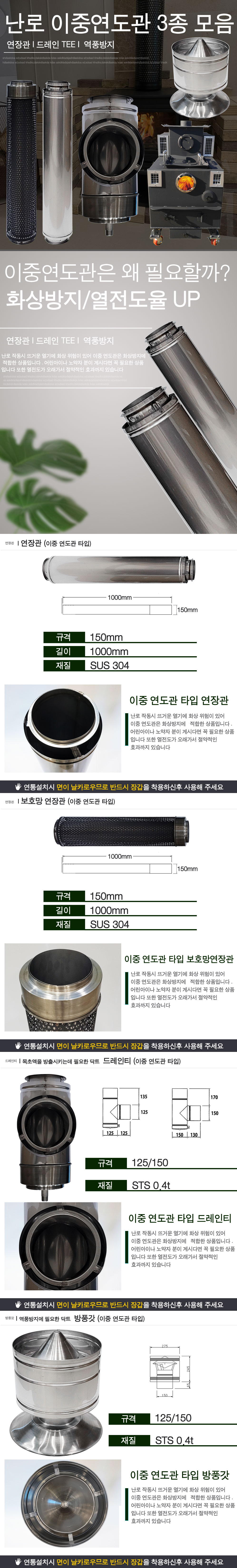 난로 이중연도관 3종 부속품 모음[연장관/보호망연장관/드레인티/역풍방지갓]