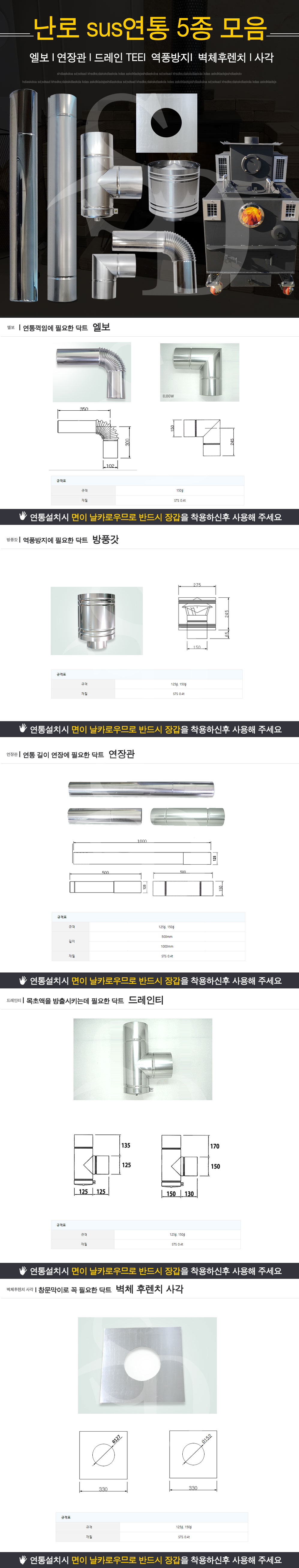 난로 SUS 연통 5종모음 [엘보,연장관,드레인티,역풍빙자,벽체후렌치,사각]